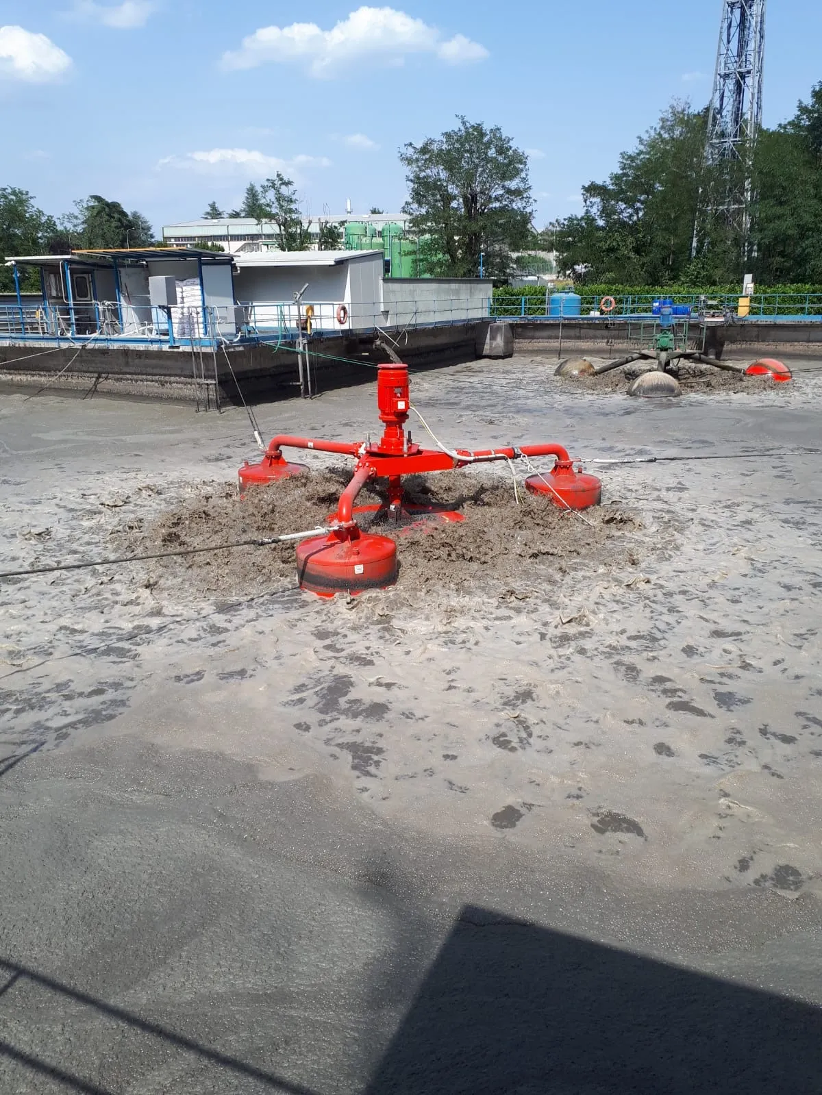 - Khi hàm lượng chất rắn trong chất thải lớn ta sử dụng máy khuấy bề mặt. Thiết bị khuấy trộn mạnh làm phá vỡ liên kết của bùn tạo điều kiện cho oxy hòa tan vào.